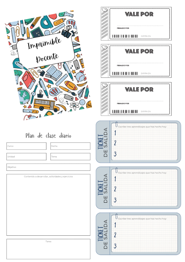 Este imprimible incluye todo lo que necesitas para planificar y organizar tus clases de manera práctica: